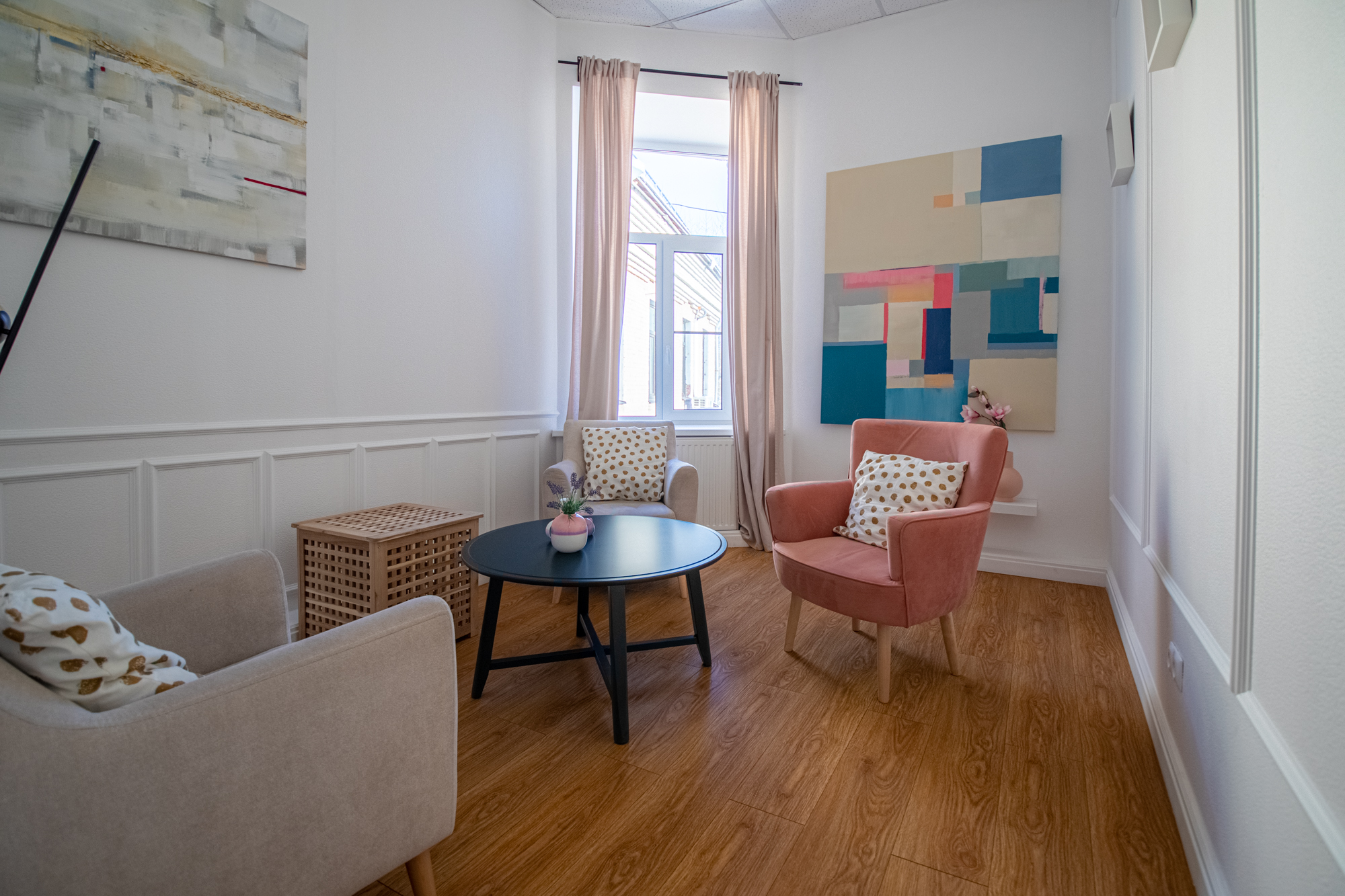 Преимущества нашего кабинета «Молочный»: В кабинете расположены три мягких, комфортных кресла, журнальный столик.