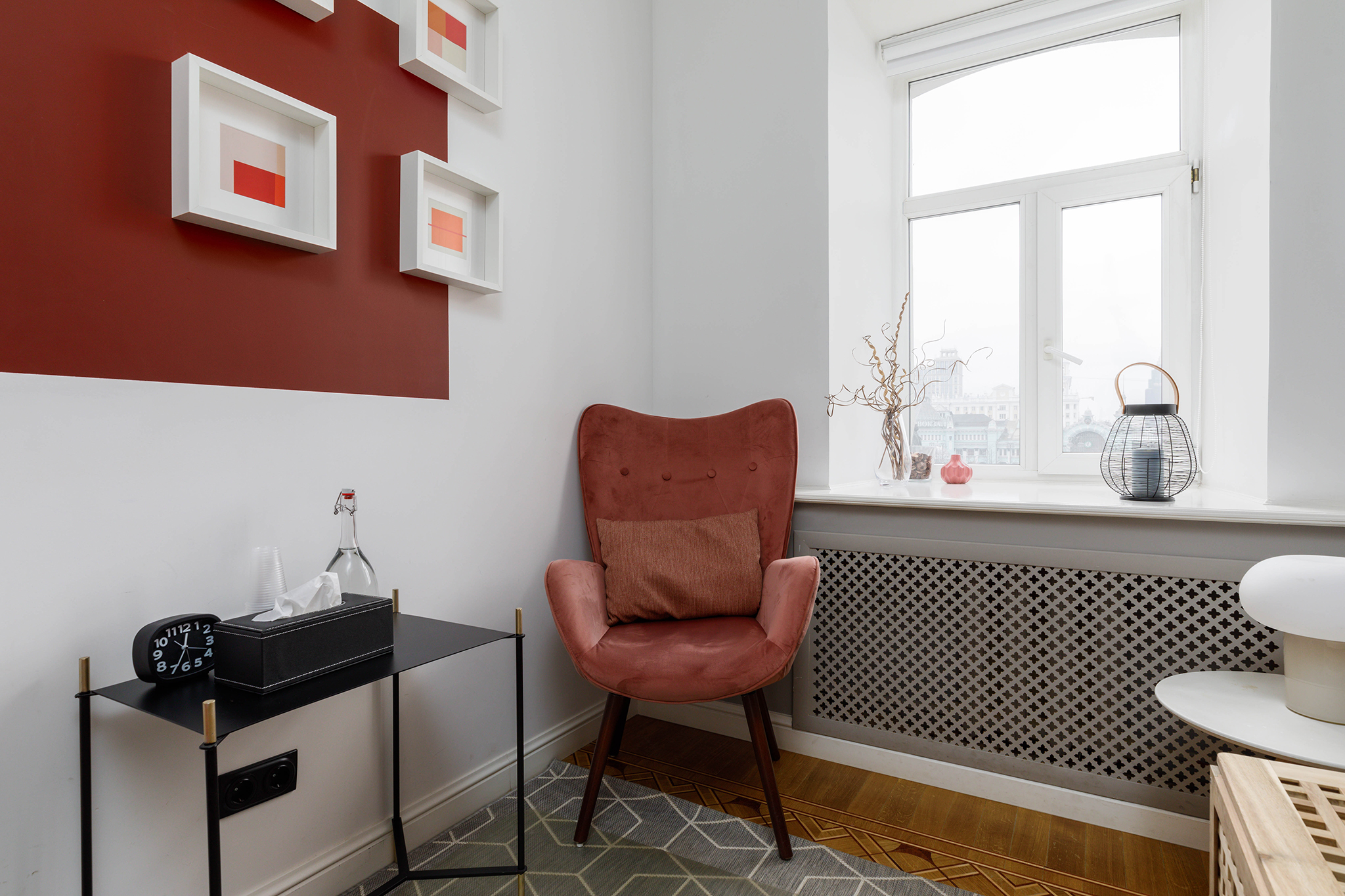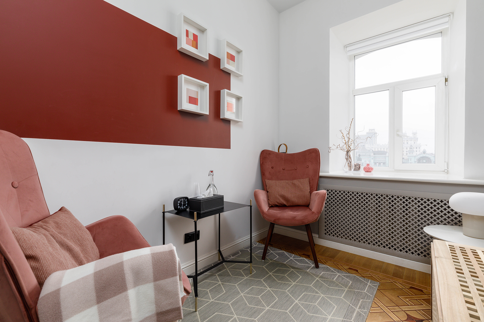 Общая цветовая гамма обстановки выдержана в современных интерьерных решениях. В данном кабинете приятно находиться. Стильное, гармоничное и комфортное помещение создает доверительную, свободную обстановку. Поэтому посетитель, который пришел на прием к психологу, уверенно и спокойно может обсудить все существующие проблемы.