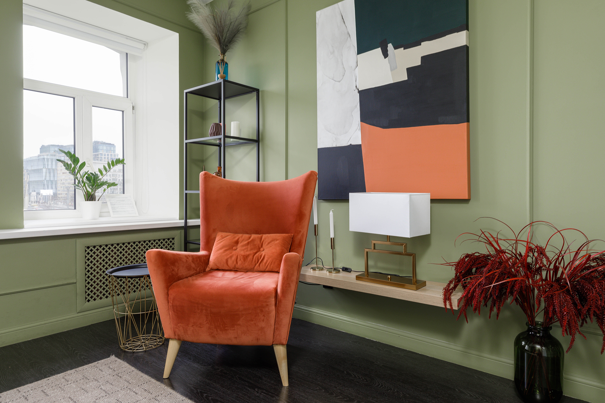 В кабинете представлены 3 кресла. Общая цветовая гамма обстановки выдержана в оливковом цвете с нотками постельных тонов, что делает кабинет максимально комфортным и создает доверительную и свободную обстановку, что дает посетителю, который пришел на прием к психологу, уверенно и спокойно обсудить все существующие проблемы.
