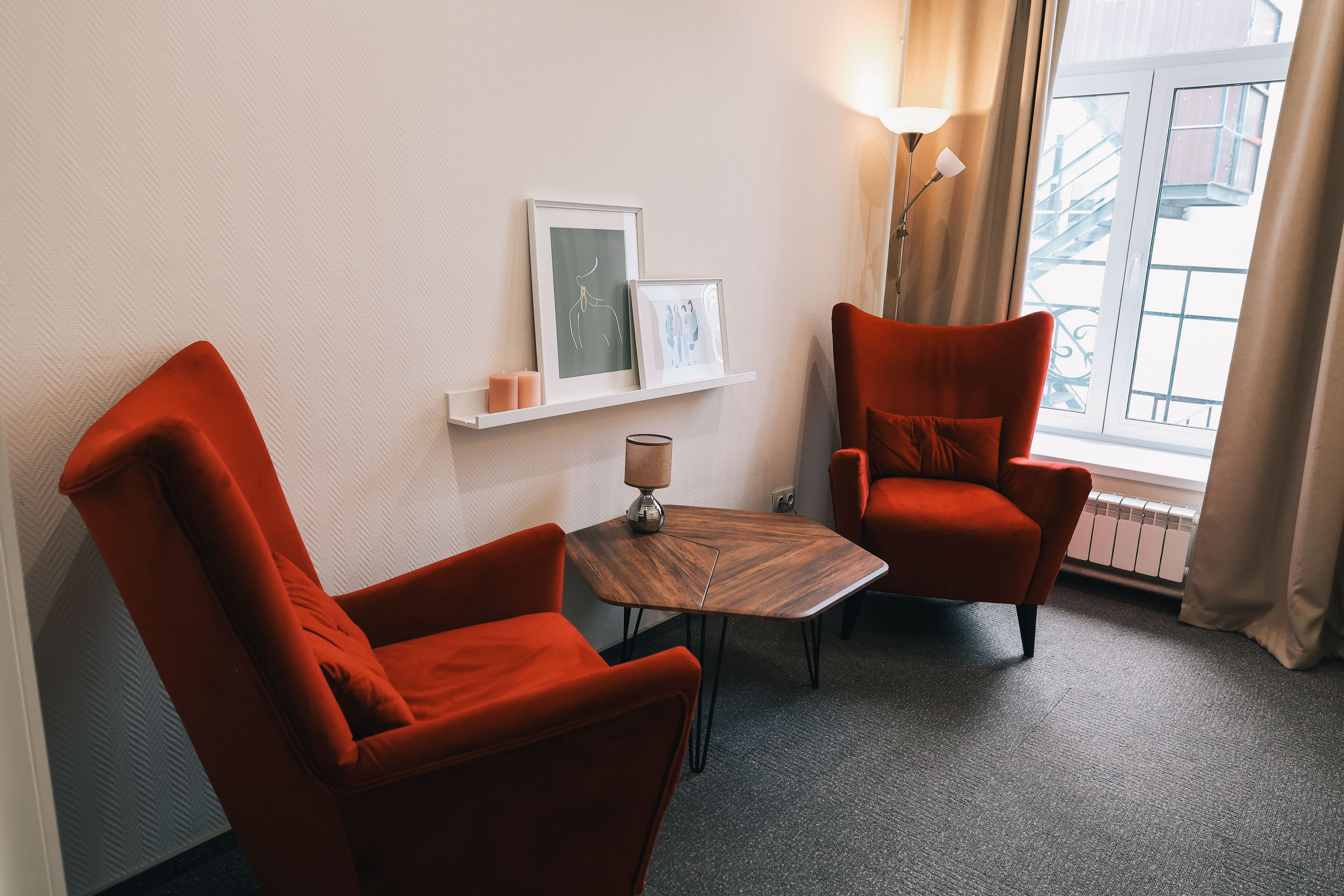Кабинет предусмотрен для проведения индивидуальных консультаций, семейной терапии и психоанализа.
